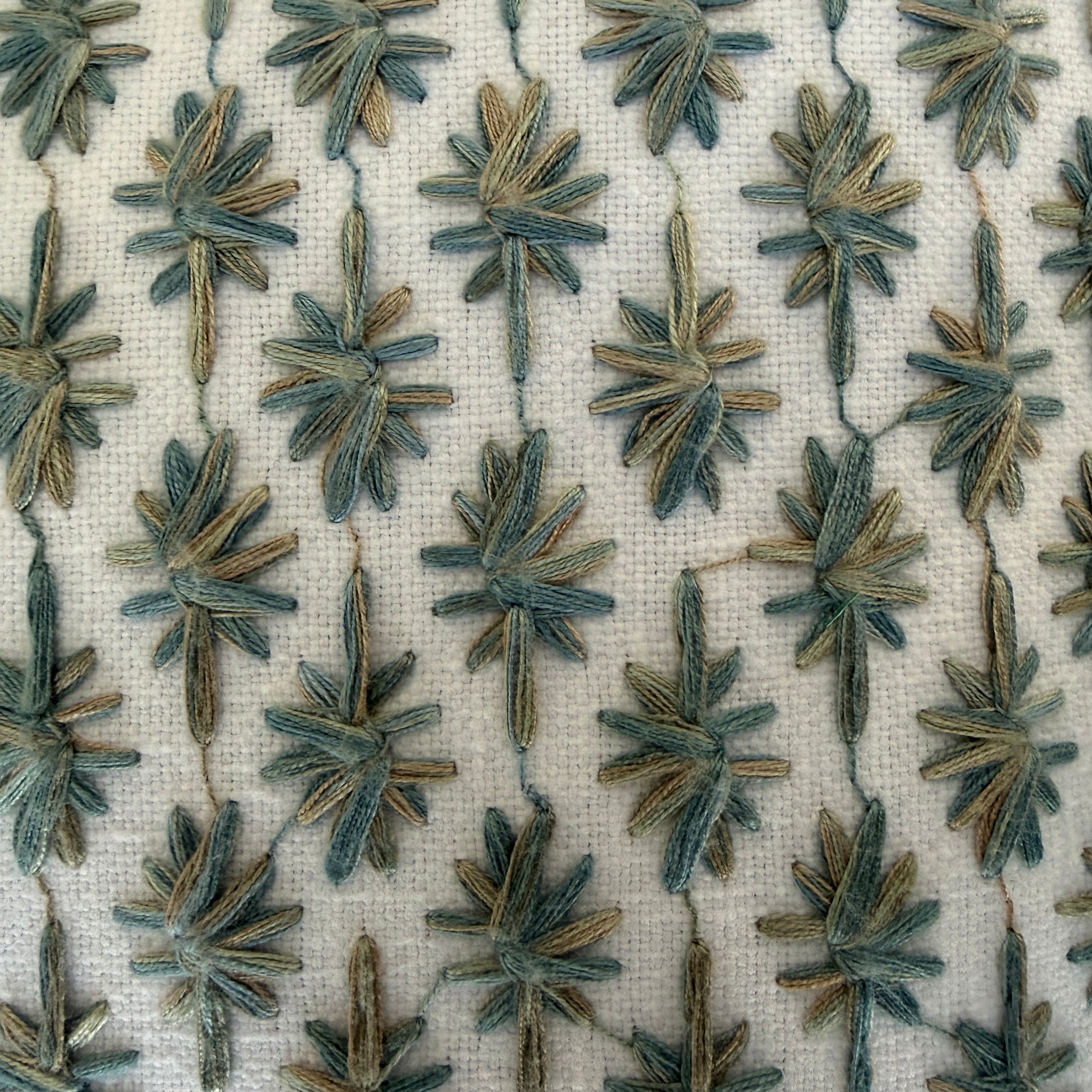 Pillow - Embroidered Stars in Seaglass Green on White - 11 x 11
