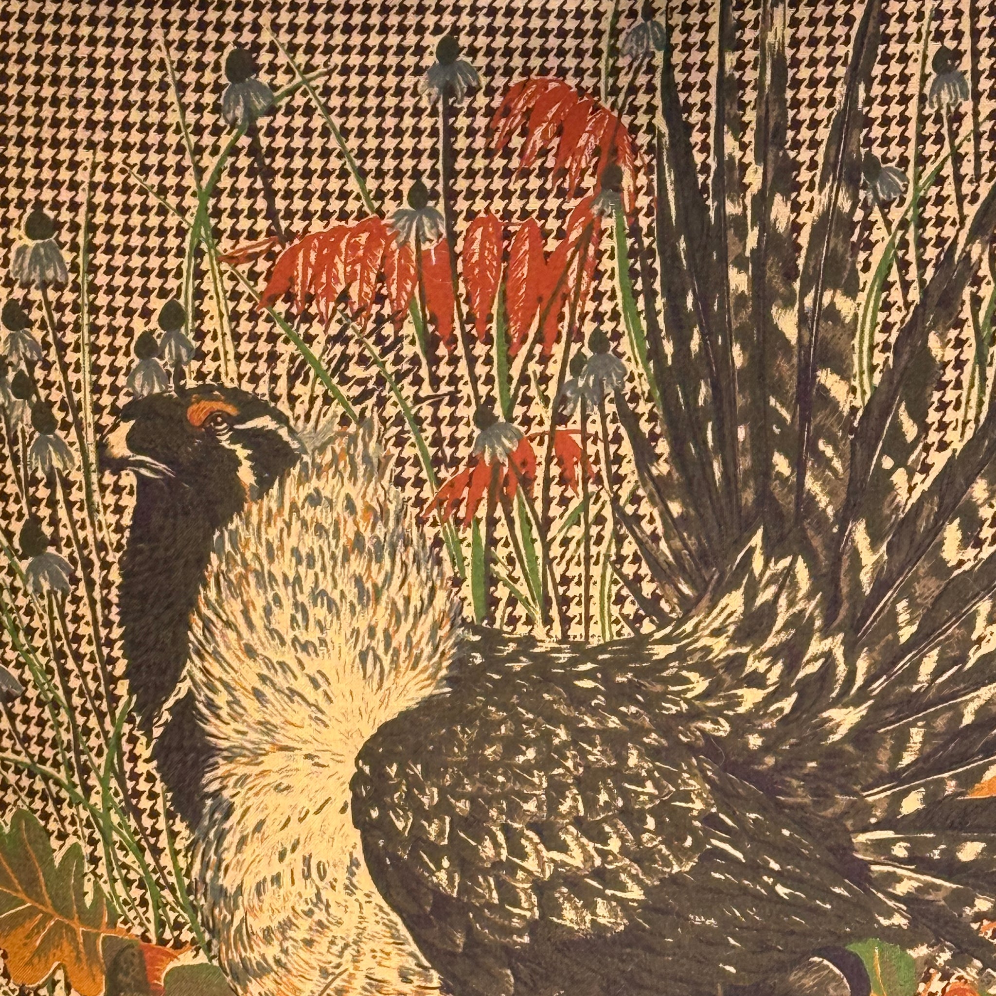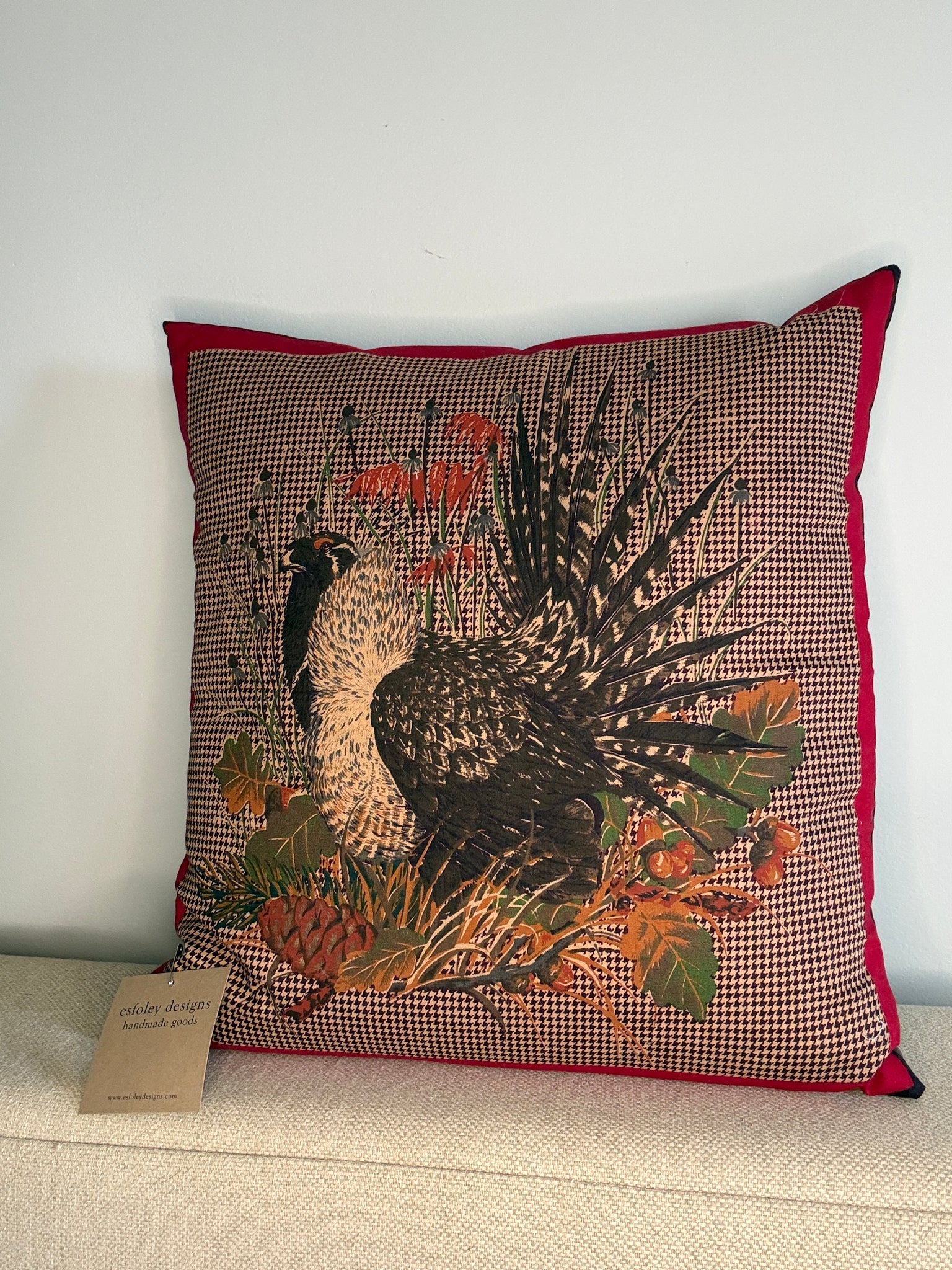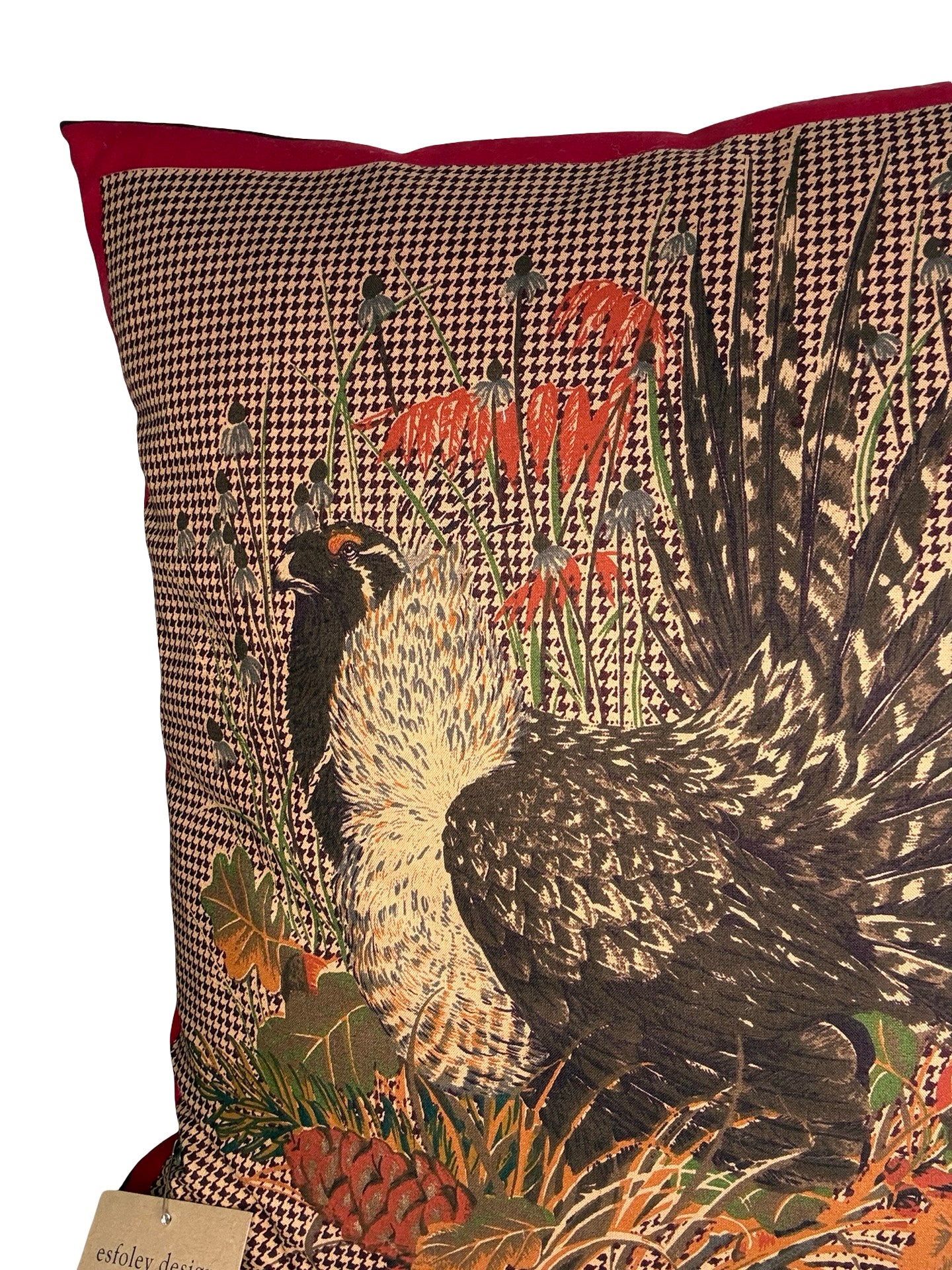 Vintage Grouse Wild Bird Pillow - 100% cotton - made into a 18 x 18 pillow with 100% Feather insert. Back side is a coordinating brown fabric.